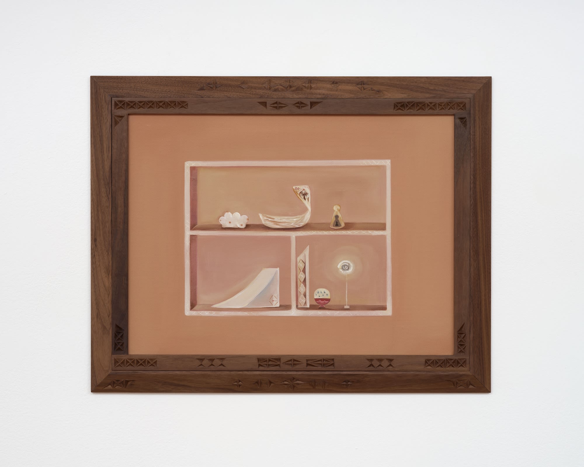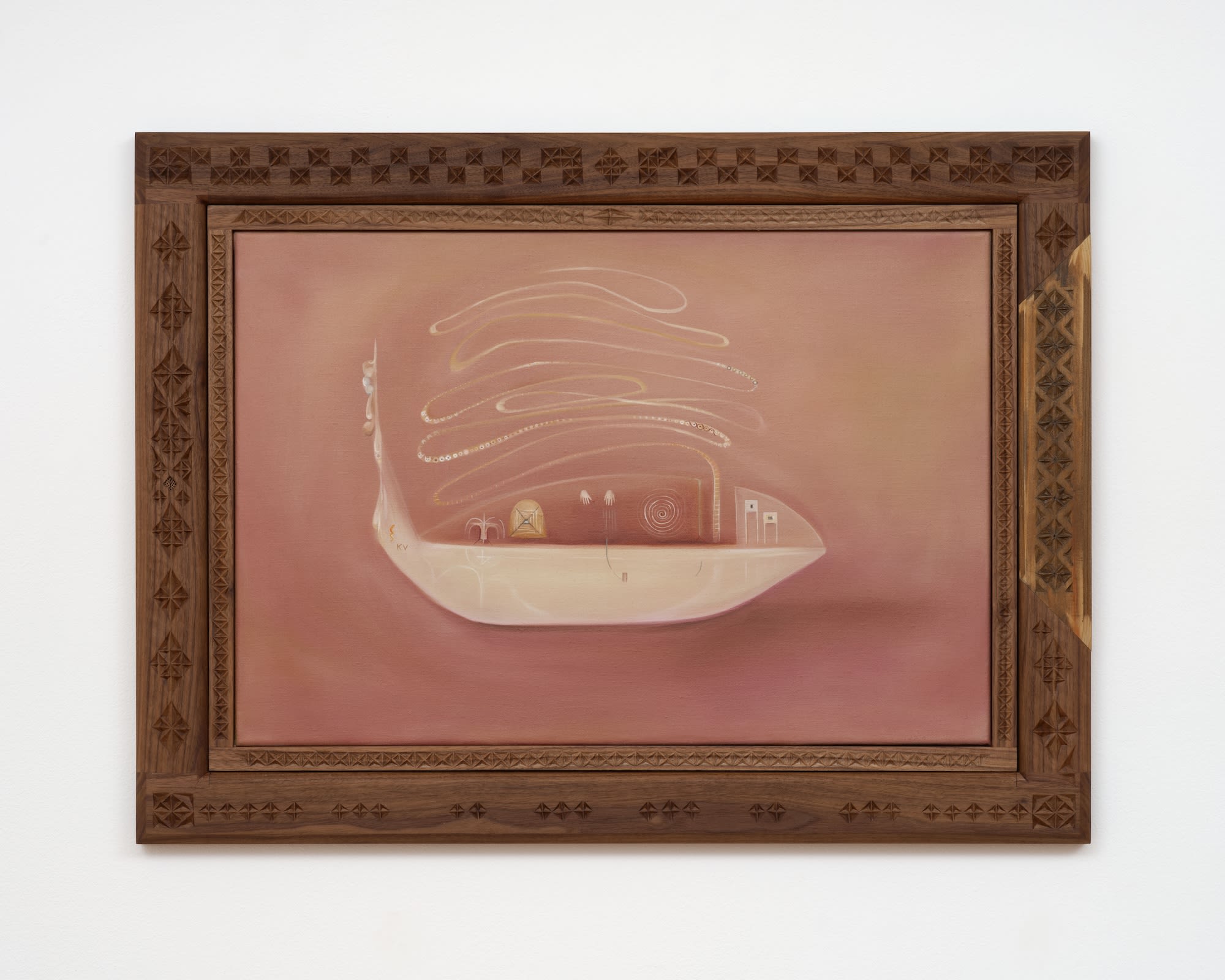 Oil on linen, hand-carved walnut