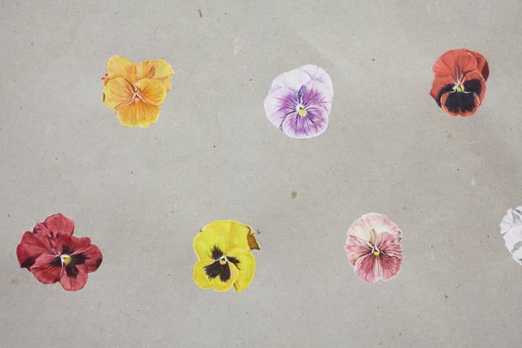 Gesso, watercolor, watercolor pencil, and acrylic on gray paper