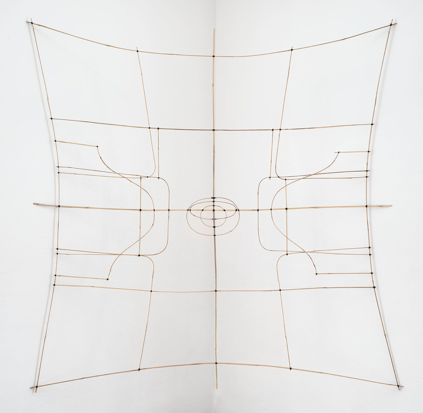 Heat-bent black bamboo, linen thread